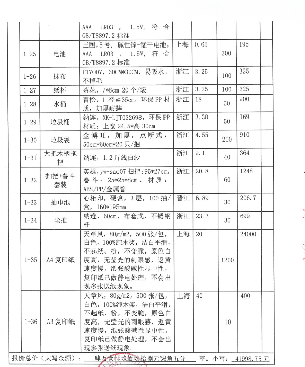| 1 | 办公用品采购 | 1批 | 莆田市城厢区宜优办公用品店 | 福建省莆田市城厢区龙桥街道石室路1197号 | 41998.75 | 详见附件 |